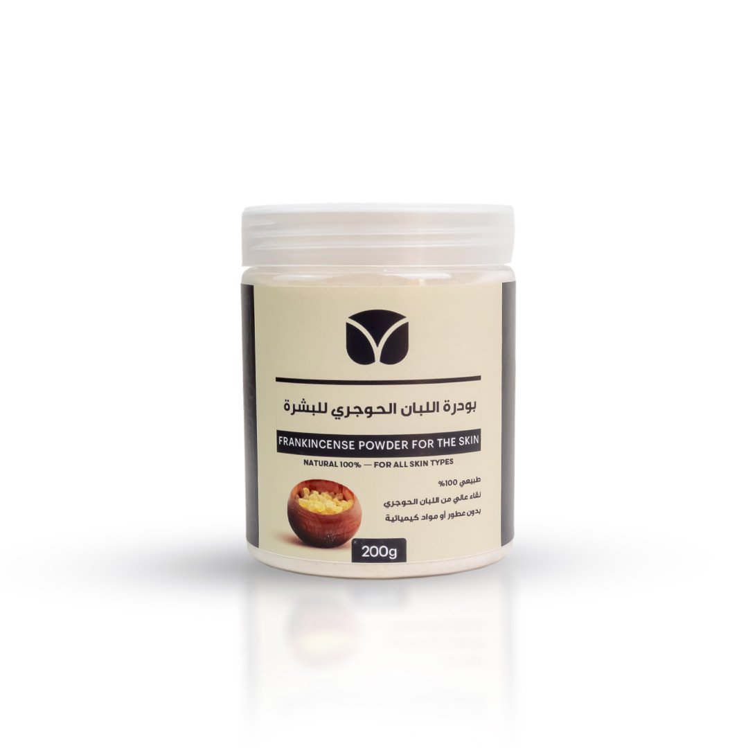 بودرة اللبان الحوجري النقية، من جبال ظفار مطحونة بالدرجة المثالية لماسكات البشرة يدخل في وصفات ماسكات وتونر اللبان، وتحضير منقوع اللبان بطريقة أسرع.