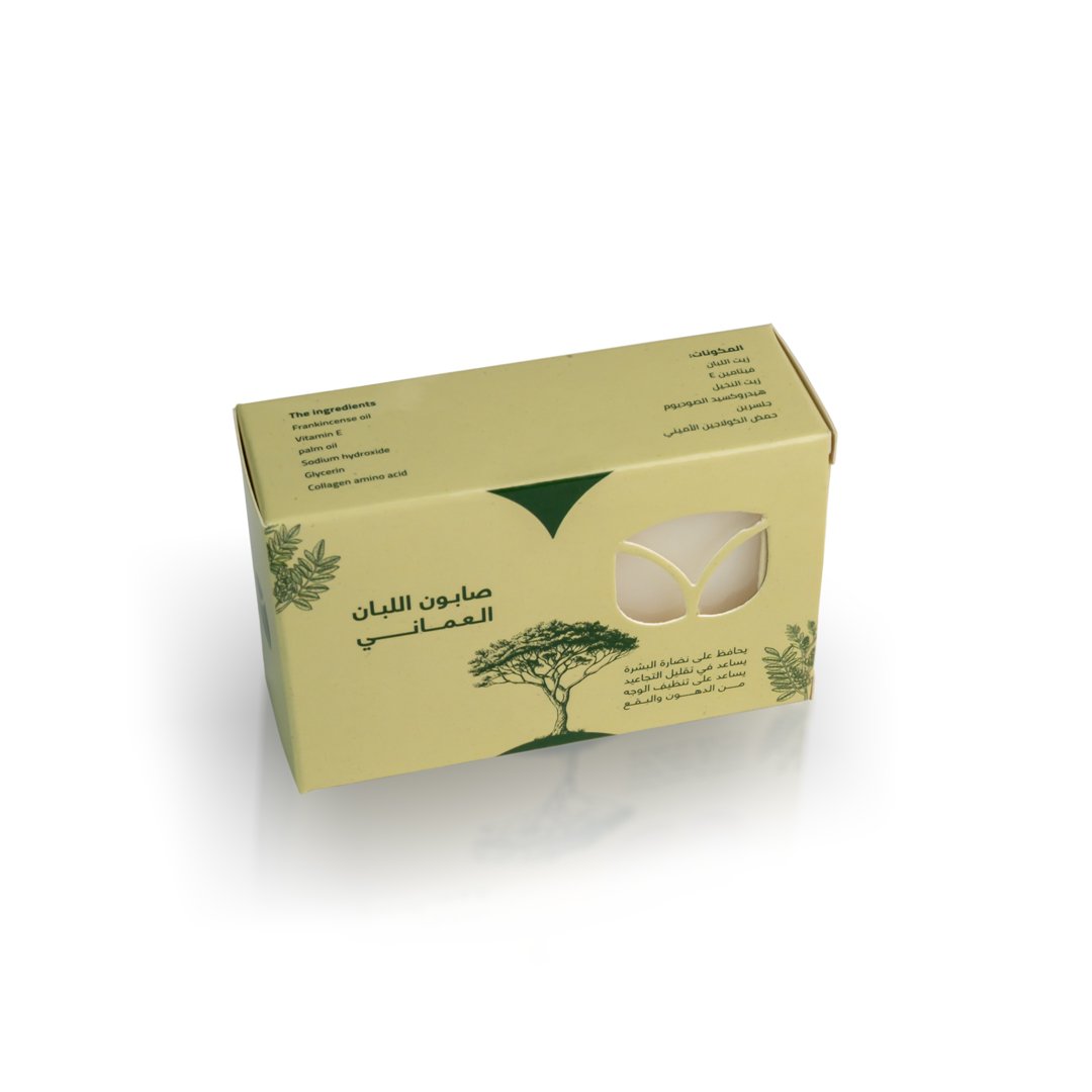 صابون اللبان العماني، صابون طبيعي وعضوي ، بخلاصة اللبان العماني الأصلي خالي من البتروكيماويات، والبارابينات، والألوان والمواد الحافظة الضارة، والزيوت المعدنية وكذلك السيليكون.